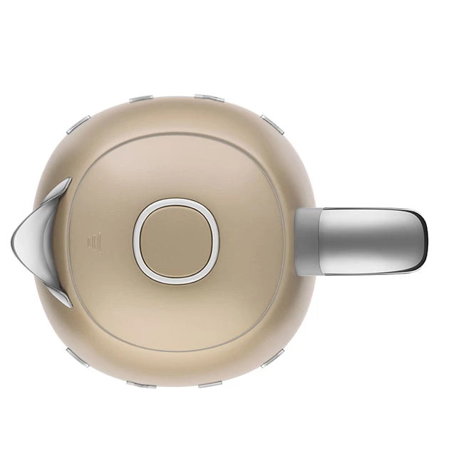 رنگ طلایی مات آن، جلوه‌ای لوکس و شیک به آن بخشیده است که باعث می‌شود این کتری نه تنها یک ابزار کاربردی، بلکه یک قطعه تزئینی جذاب برای آشپزخانه‌های مدرن و کلاسیک باشد. طراحی منحصر به فرد و زیبای آن، با خطوط نرم و منحنی، به‌طور خاصی در جذب نگاه‌ها موفق عمل کرده است و به راحتی می‌تواند با دکوراسیون‌های مختلف هماهنگ شود.